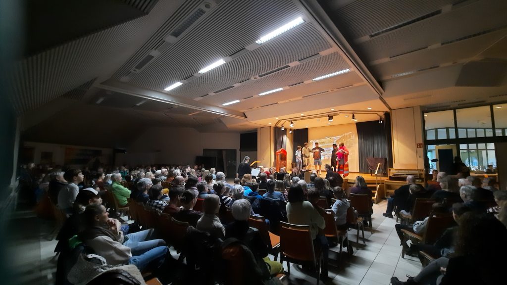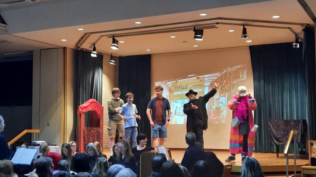 Groß und klein verfolgen gespannt, wie „die drei ??? Kids“ den Fall lösen!!! Viel Musik und ein wunderbar einstudierter Chor (JuniorCHOR und KämmerchenCHOR) unter der Leitung von Jutta Benedix und Kantor Andreas Pumpa begeisterten das Publikum!!! Holger Müller (Einstudierung Schauspiel) konnte leider aus gesundheitlichen Gründen nicht dabei sein.