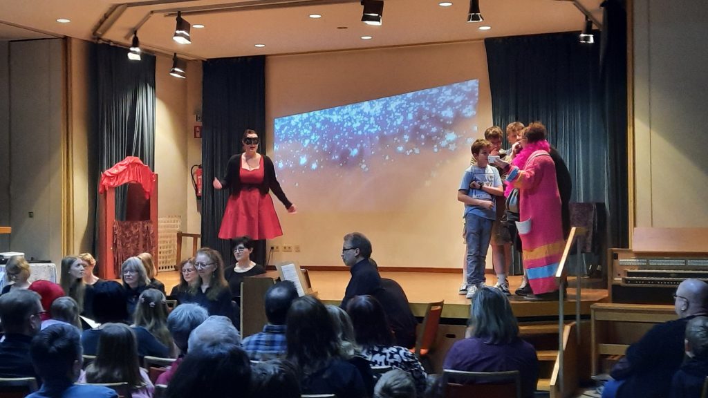 Im Anschluss strömten die Besucher an die Büchertische – zahlreiche junge „Leseratten“ nutzten die Gelegenheit, ihre gelesenen Abenteuer gegen neuen Lesestoff einzutauschen. Besonderes Highlight der diesjährigen Büchertauschbörse war ein extra nur für Kinder eingerichteter Raum, wo die kleinen Bücherwürmchen ganz eigenständig ihre bevorzugten Schmöcker anschauen und eintauschen durften. Das Fundraisingteam der Kirchengemeinde versorgte alle mit frischen Waffeln und Kaffee. Die Kombination aus Kulturgenuss und nachhaltigem Lesespaß machte den Nachmittag zu einem vollen Erfolg!!! Die nächste Kinder-Musicalaufführung mit Büchertauschbörse ist schon gesetzt: den Termin im Februar 2027 sollte man sich unbedingt im Kalender vormerken!!!